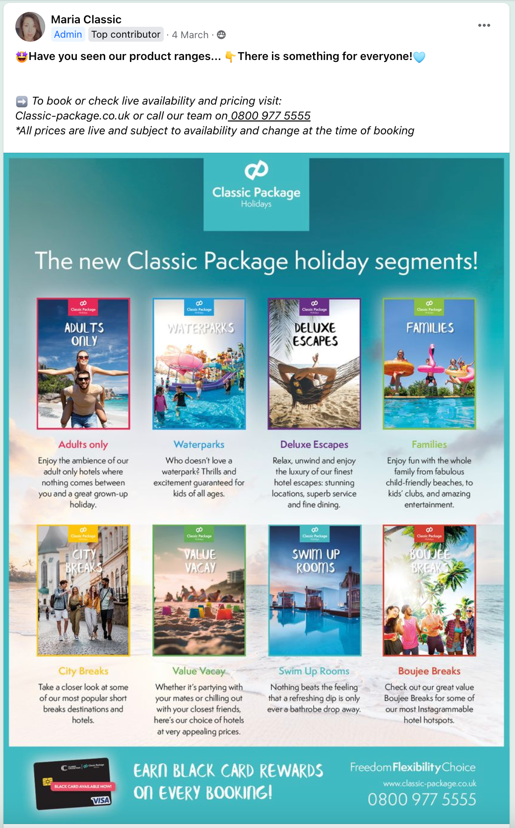 To support brand growth, we segmented our product offering to target select audiences and make it easier to book different types of holidays. The aim was to give each category its own identity but ensure the overall brand remained a prominent feature of all collateral. The colour system was rolled out across a range of platforms including individualised landing pages, email headers, social posts and printed brochures.