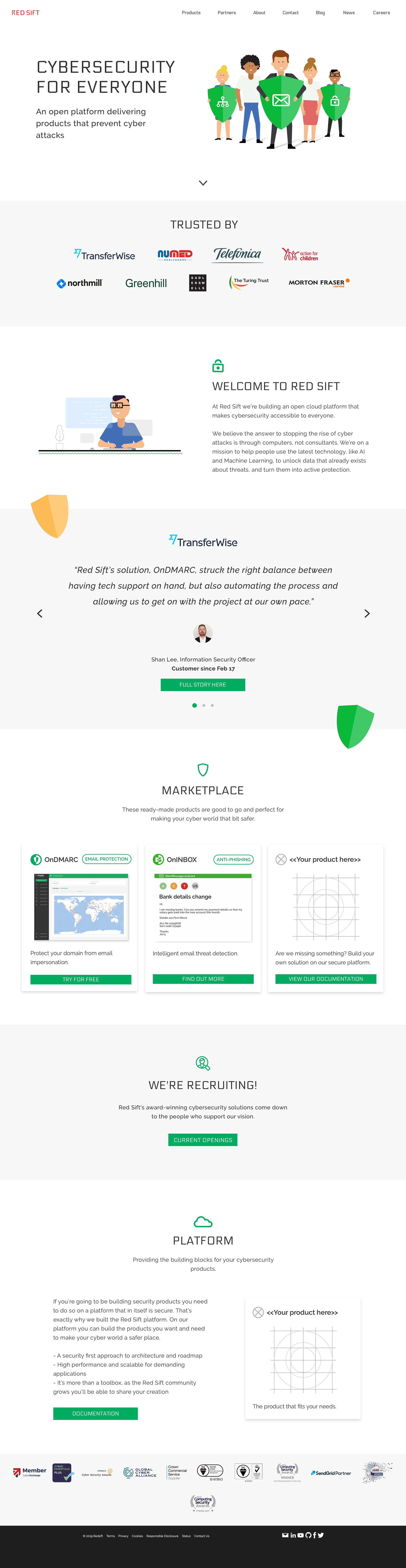 When I joined Red Sift, the long term vision of the company was to provide a platform of products that all worked together to help businesses improve their cybersecurity. However, the platform did not yet have multiple products on the platform, resulting in a corporate website identity aimed at investors/partners, and separate websites for the two products which existed.